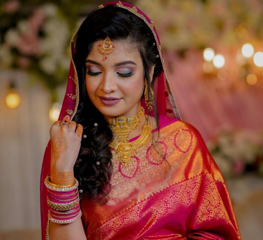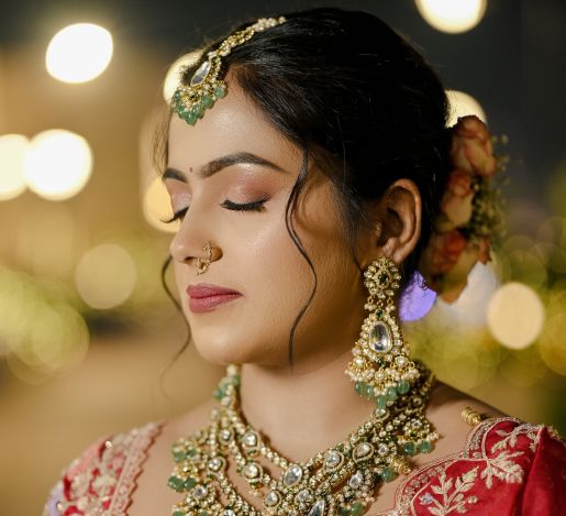 Over the years, we have understood the unique lighting challenges that all reception venues present, ranging from candlelit settings to bright camera flashes, and we have a well-equipped team for making all your moments capture-ready. Our HD bridal makeup and strategic application techniques make sure that your makeup stays intact and transitions beautifully in every photograph and captures your natural elegance.